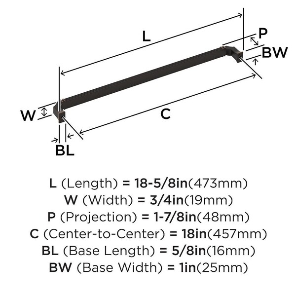 Townsend Appliance Pull 18 inch CC Oil-Rubbed Bronze