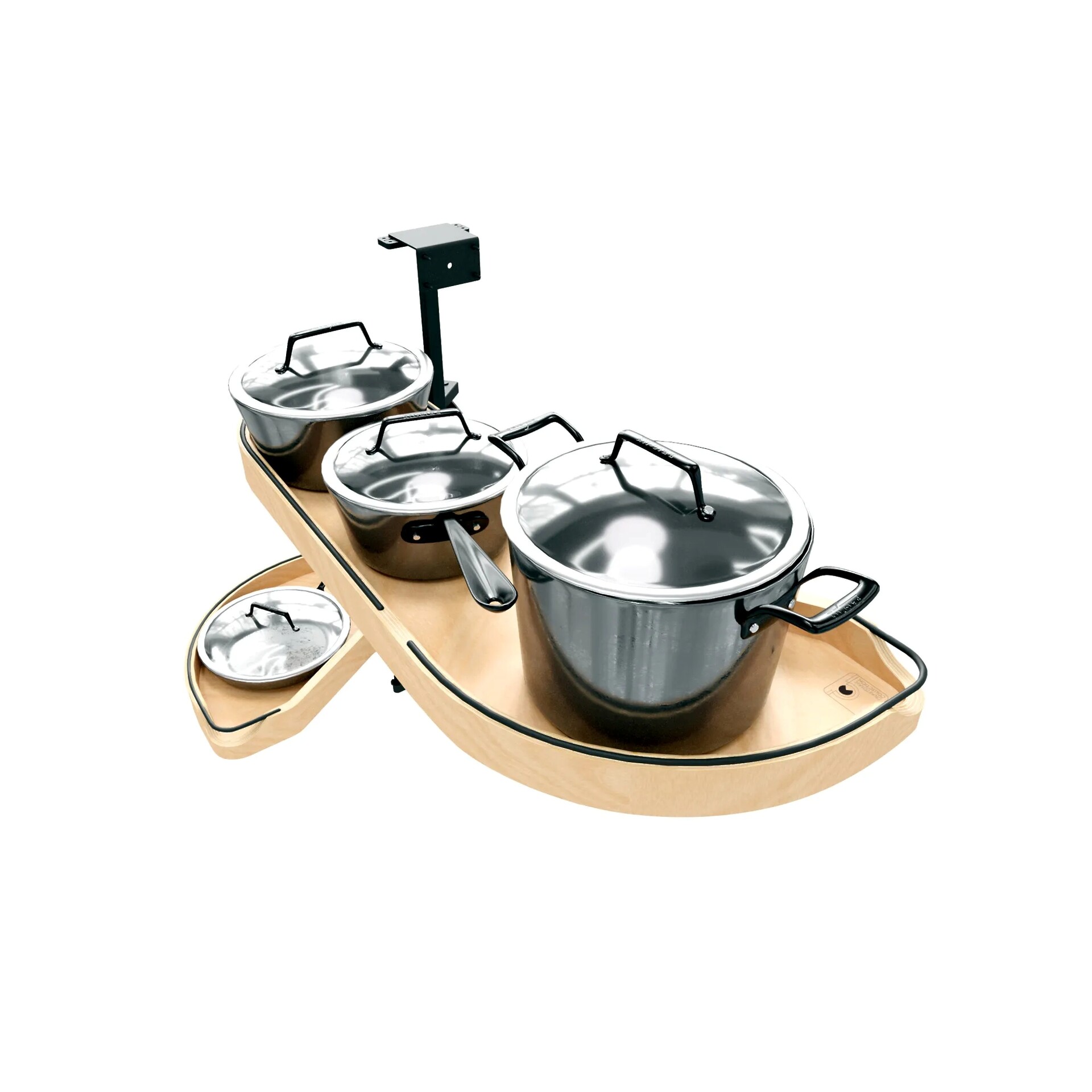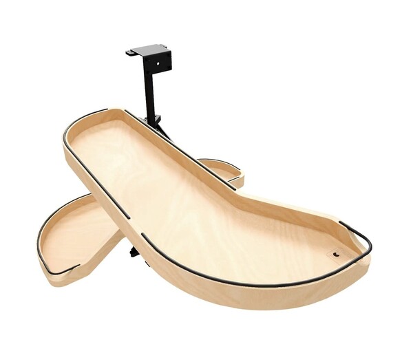 The 487CC Series Craftsman Collection "Girasolo" Blind Corner Optimizer by Rev-A-Shelf® offers a refined and sophisticated update to the classic Girasolo design. Crafted from maple with gracefully curved lines and soft edges, this innovative solution blends both elegance and practicality. The Girasolo glides effortlessly out of the cabinet on a soft-close pivot hardware system, eliminating the need for adjacent appliance clearance and maximizing accessibility. Designed for both right and left blind corner cabinet openings, it is available in multiple sizes and single or two-tier configurations, providing versatile storage options for hard-to-reach spaces.
