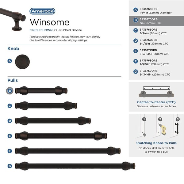 Winsome Pull 76mm CC Oil-Rubbed Bronze